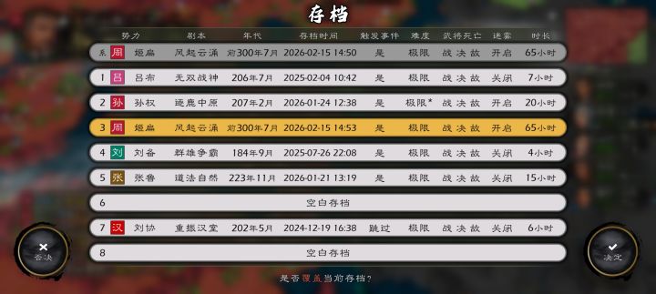 截止目前2026.2.101..同步了官方的的新版本更新,部分官方己优化过的角色在本系列己优化过的将以用官方的为主(如田䂊在本系列第一版中己被我优化过了,官方更新后我将把我优化过的移出本剧本并把官方的重新加回来)同时新特性的加入我也依史实及主观意识调整本系列己调整优化过的角色下面是本次剧本的更新优化:胡奋(魏)夏侯霸(魏/蜀)文钦(魏) 刘封(蜀)李严(蜀)高翔(蜀) 张角(群)张机(群
