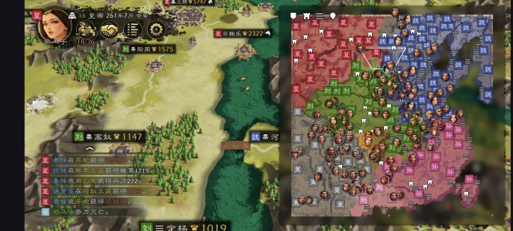 给曹老板安排了太多自建,导致曹老板疯狂扩张,开局三线作战,占领南蛮之后集中兵力打孙刘两家,孙策势力在建业,曲阿,跟曹操疯狂交战逐渐陷入焦灼。无奈曹操集中兵力强势推进刘备三都港,汉津港企图拿下襄阳,刘备成都因面临董卓的入侵不得不派遣兵力支援成都,导致襄阳兵力不足最终沦陷,此时的曹操因占据南蛮领土导致资源兵力空前强大,屯兵250万而孙刘两家加起来也才一百万左右,刘备襄阳丢失成都局势也不妙,我大夏决定