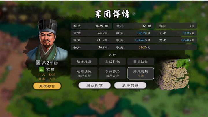 无论对对于新玩家或是老玩家。关于军团总有各种各样的疑问和不同的应用。今天我就谈一些关于我个人的浅见,欢迎大家参考和辅证。军团的缺点。大家应该都知道。就是军团自主进攻的时候很脑残。比如1=打着打着突然撤军了。2=设定了目标之后迟迟不动手。3=不会攻击,除了州府之外的郡城。以及关卡以及一些箭塔等。还有自主防御的时候也很脑残。假设城里有6万兵。如果敌军来势汹汹。但是又没到临界点。那么就算这座城站在那