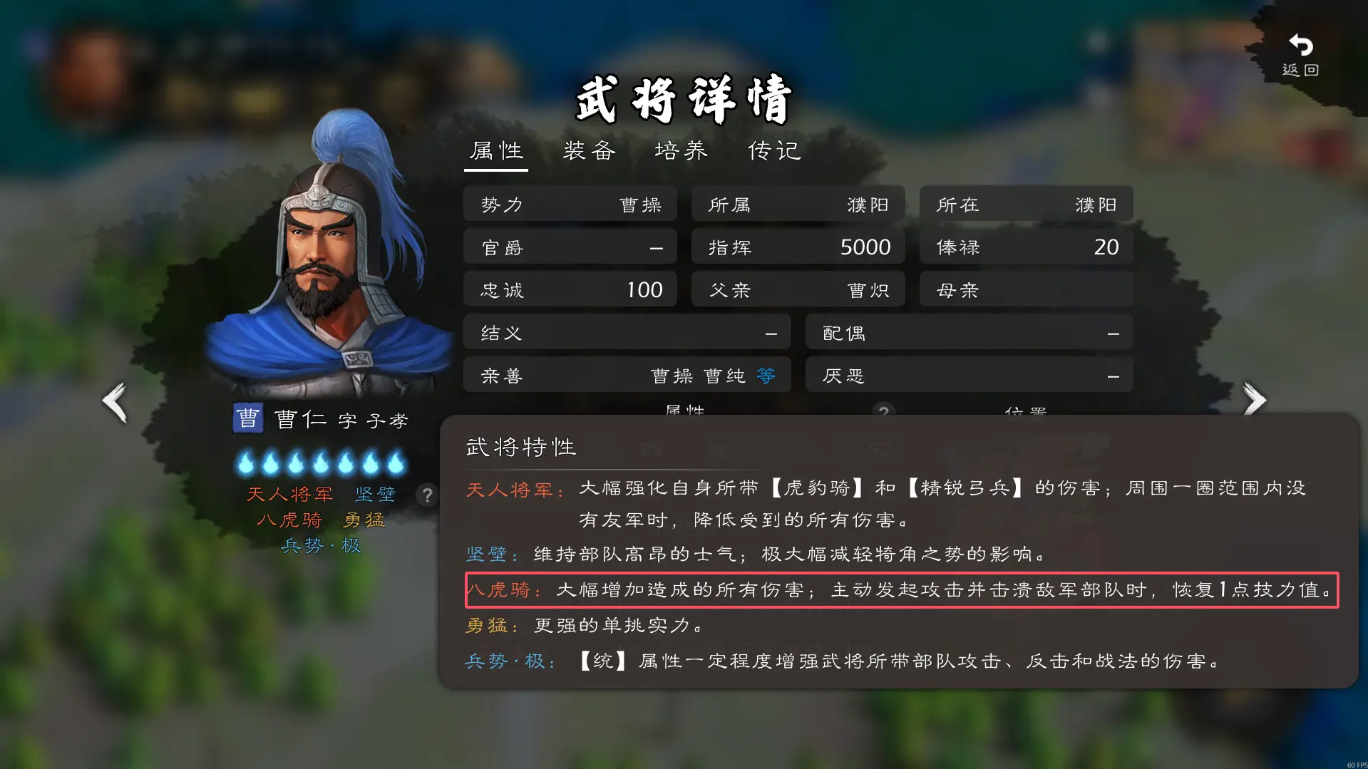 3.1.19版本目前最优自建法师,不需要额外特殊兵种DLC更多自建武将请移步(持续更新)特性两个超级性价比的蓝色特性【任侠】42%高额增伤(之前更新出现bug,计策也算进兵种增伤里,不改就是机制,晚上发版主看不到),还有45%的高额免伤,又有伤害又有坦度。【鬼才】13%增伤以及技能概率免冷却,总共60%的增伤,够用且伤害不溢出。(下图,满级【龙吟枪鸣】对飞熊军的伤害是8497,飞熊军6