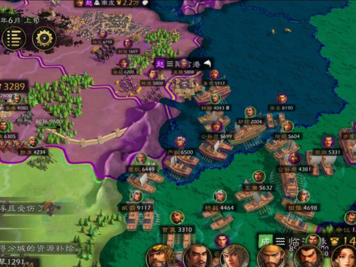 参谋长,你记一下 首先咋们得有两个军团,一个军团负责打架,一个军团负责运输。 打架的军团,要集中猛将统帅,要指挥上人数高的将才,城池越少越好,这样能集中战力,让军团的对抗能力更强。 运输的军团,主要给文臣后勤,城池越多越好。这样能够保证打架的军团,有源源不断的兵力和物资。 在开打之前,先做好前线爆兵的准备,也就是把兵力屯满在打,