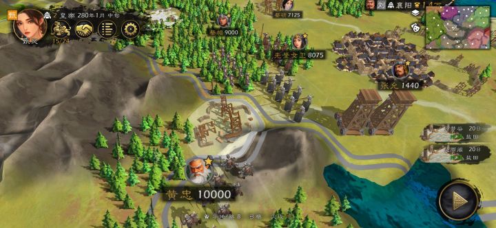 参谋长,你记一下 首先咋们得有两个军团,一个军团负责打架,一个军团负责运输。 打架的军团,要集中猛将统帅,要指挥上人数高的将才,城池越少越好,这样能集中战力,让军团的对抗能力更强。 运输的军团,主要给文臣后勤,城池越多越好。这样能够保证打架的军团,有源源不断的兵力和物资。 在开打之前,先做好前线爆兵的准备,也就是把兵力屯满在打,