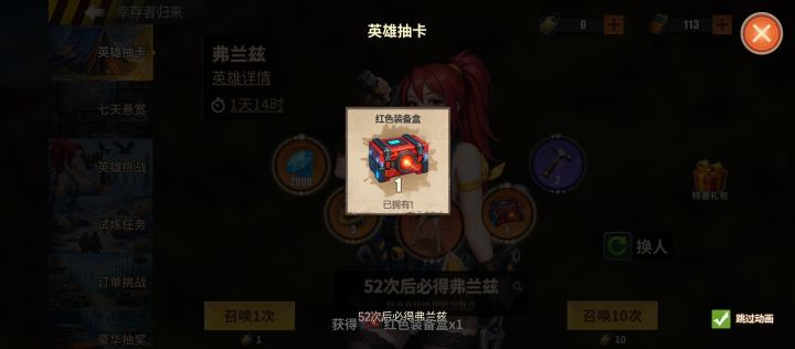 这一期归来到目前两个弗兰兹,加上一个红箱子,我只能说玄学还是有用的。单抽奇迹,以后就算抽1000下,我也单抽。