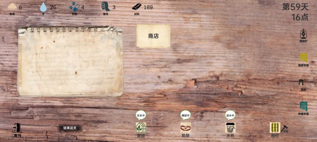 前期就是城市沦陷前,尽量充分利用时间,多搜集材料而不是在码头打工,因为码头食物再多也不是可持续的,遇到劫匪就更糟了。可以利用一些无法12小时搜集物资的时间点,把夹子水井栅栏都修好。