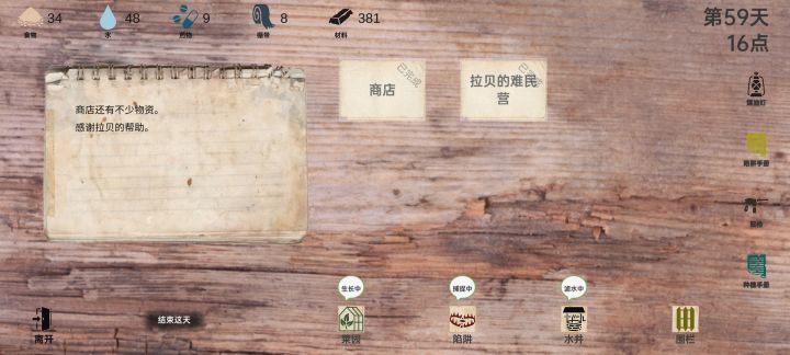 拾荒者还是太超模了。大量的材料可以保证快速自给自足。开局优先摸学校。摸够了51材料就建造水井。如果有菜园种植手册就先第二个建造菜园。没有就第二建造捕鼠陷阱。前12天视情况去码头搬砖回一口血确保活下去。13天前尽量把建筑都建好。这样容错就大的离谱。很难活不下来。