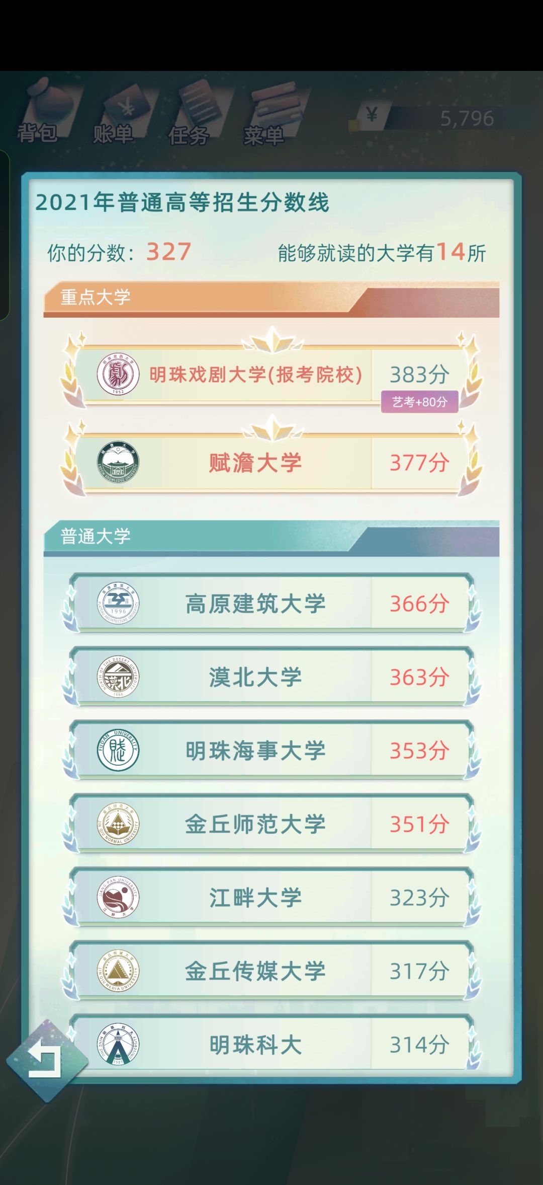 首先我们要清楚影响高考成绩的因素是什么,一共三大要素:考试作答,考试前学科分,个人属性(主要是智商)。经测试得如果学科分和属性不高,即便是考试作答全对也难以高分到大学任选,所以在前期需要注意自身学科分和属性的培养 而对于学生时代,书是提高属性必不可少的方式,特别是小学和初中的时候,书店是每年必去的,要是零钱足够,推荐用在买书上。每年免费读的书有好几种,挑选对自己有用的书是重中之重。下面是我整理的各