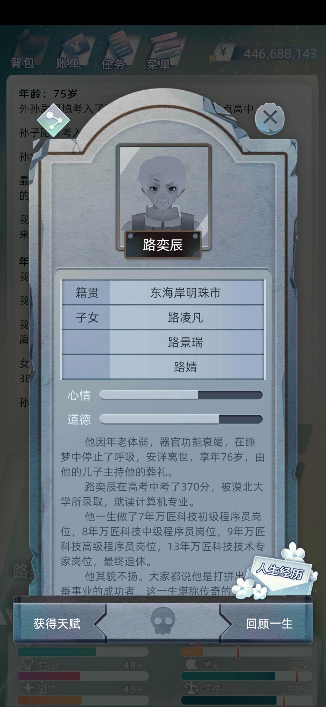 哪个结束之后,选重启人生是重新开始这个角色吗