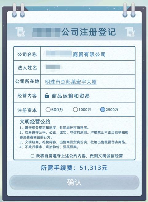 建议公司类型:可以分成投资公司,(专心投资炒股等投资)游戏公司,(开发游戏赚钱或者垄断搞氪金等等)网红公司,(投资建设明星然后用他们赚钱)商贸公司,(倒买倒卖,二道贩子)银行企业,(可以来办银行业)工业公司,(可以开设各类加工厂和原料工厂)物流公司(现在有了,就不用说了)和一个魔怔一点的衡水学校公司(没错的,衡水是个公司)(最后一个选择注册的时候可以播放一首请校准时钟)最后建议加一个公司多持,然后每拥有一种公司就多一种buff。之后再加上敌对的各方集团和势力。哦对了,还有集团,就是统筹处理这堆公司,然后成立集团可以:大打贸易战,宣布宿敌,外交警告,贸易谈判,合作,同盟,包围网等等。最后建立一个世界巨企。