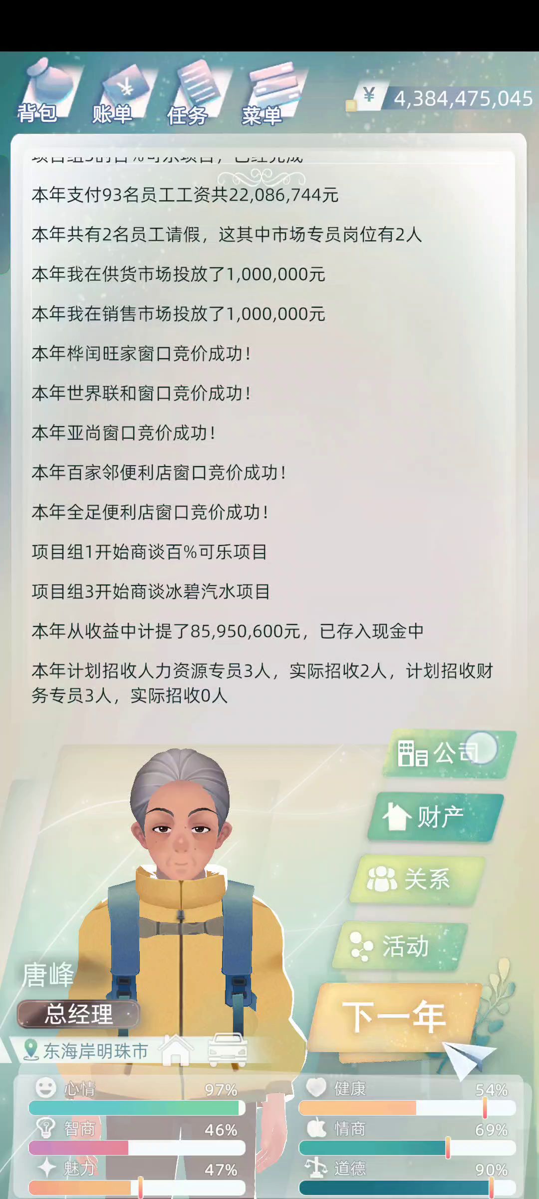 😇算是过了个美好的人生了,3岁就从一代接手了3亿过来,但是公司不知道为啥直接没了,没有转给副总经理(2代的父亲)。 中考满分高考满分,创业公司破亿,妻子魅力93,生了儿子次年又生了龙凤胎😅。 现在儿女全部成家引入公司,全家成员年薪8百万起步,😅73岁时候有4个孙子1个孙女,1个外孙2个外孙女。准备安心去世把40多亿转给外孙,第3代成年就当赛车手