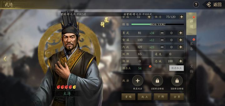 游戏内的将领可分为君主将、名将、普通将、官职将四大类型。所有名将全部只有唯一的一个,靠战斗抓捕获得,初始名将忠诚度全部为70点,战胜一次降低5点忠诚。低于50忠诚就有几率抓捕到了。将领又分为白、绿、蓝、紫、橙五个品质,酒馆普通将 官职将为白 绿色品质。名将分为绿 蓝 紫三个品质,紫色为超一流名将、蓝色为一流名将、绿色为二流名将。其中君主将便是玩家,该将领不会被抓捕,也无法下野,君主将升级时只