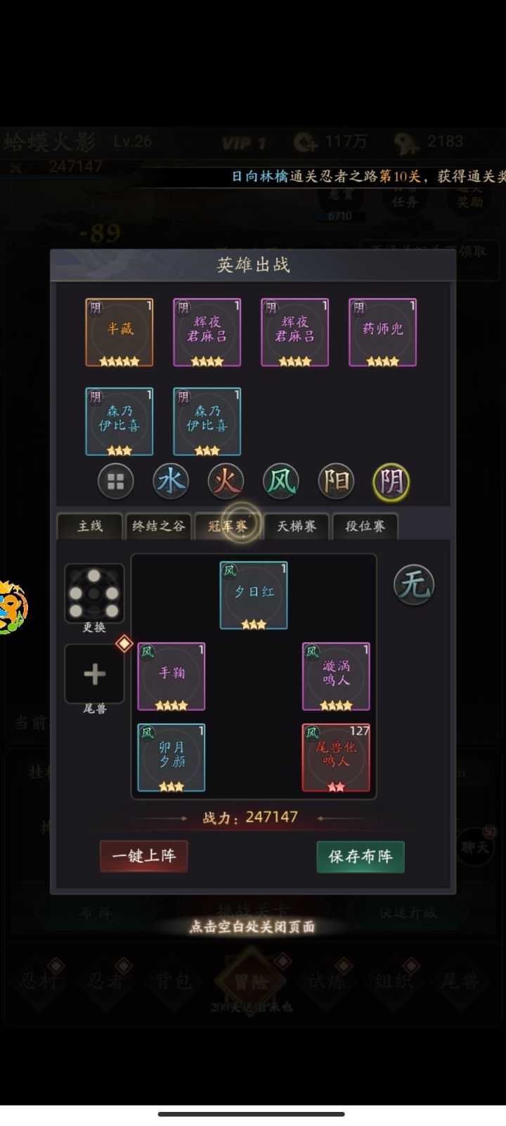 说一下这个游戏绝对的零氪 开局先加群来拿到兑换码 进入游戏在此兑换礼包点击首充,领取完之后打开选择佐助,不要问我为什么 70关后会送鸣人,小撄可以抽出来,佐助前期很好用。主要培养佐助,再养一个奶妈前期无敌