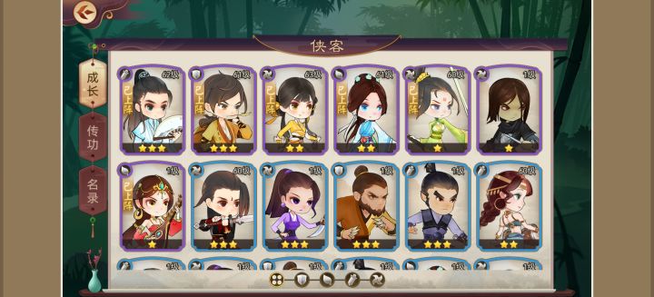首先要表扬一下,能看出来侠客设计下了功夫的,技能阵容搭配有一定讲究,不纯拼数据,包括立绘设计。机关玩法,比武玩法,云顶玩法也挺新颖。道具不多,游戏简单,个人认为比那些动不动搞一堆花里胡哨骗氪金的游戏强的多。