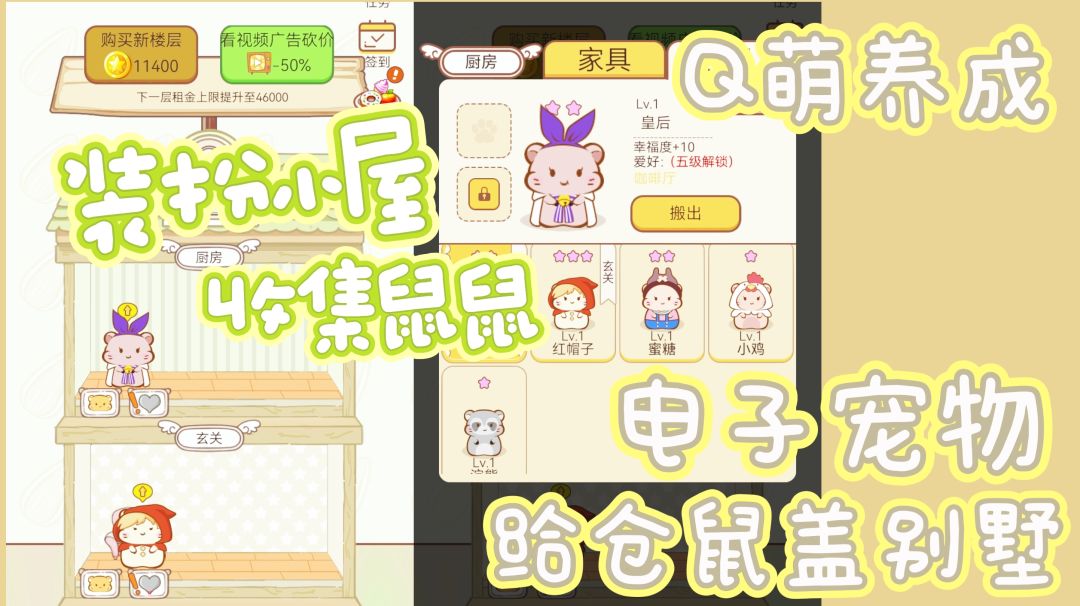 装扮多个不同🏠小屋,收集仓鼠🐹画风超级可爱的休闲模拟放置小游戏