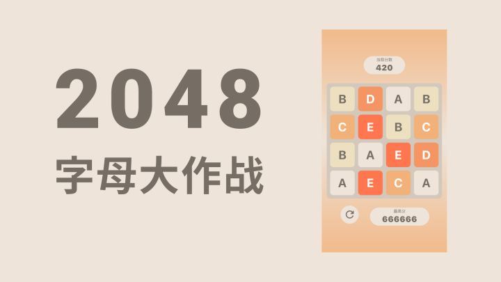 字母大作战是2048的升级款小游戏,在延续2048的经典玩法之上,替换数字为字母,增加游戏的趣味性,希望给你带来愉快的游戏体验。