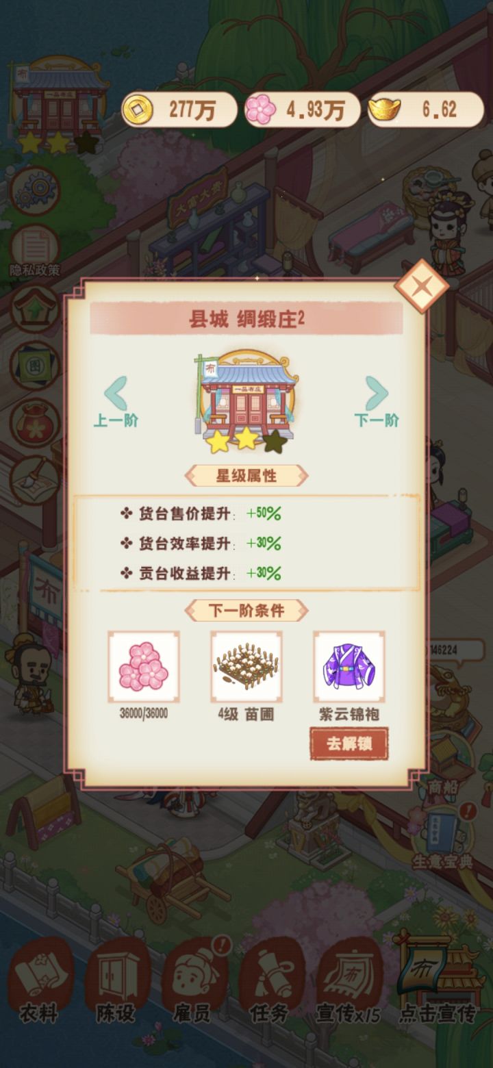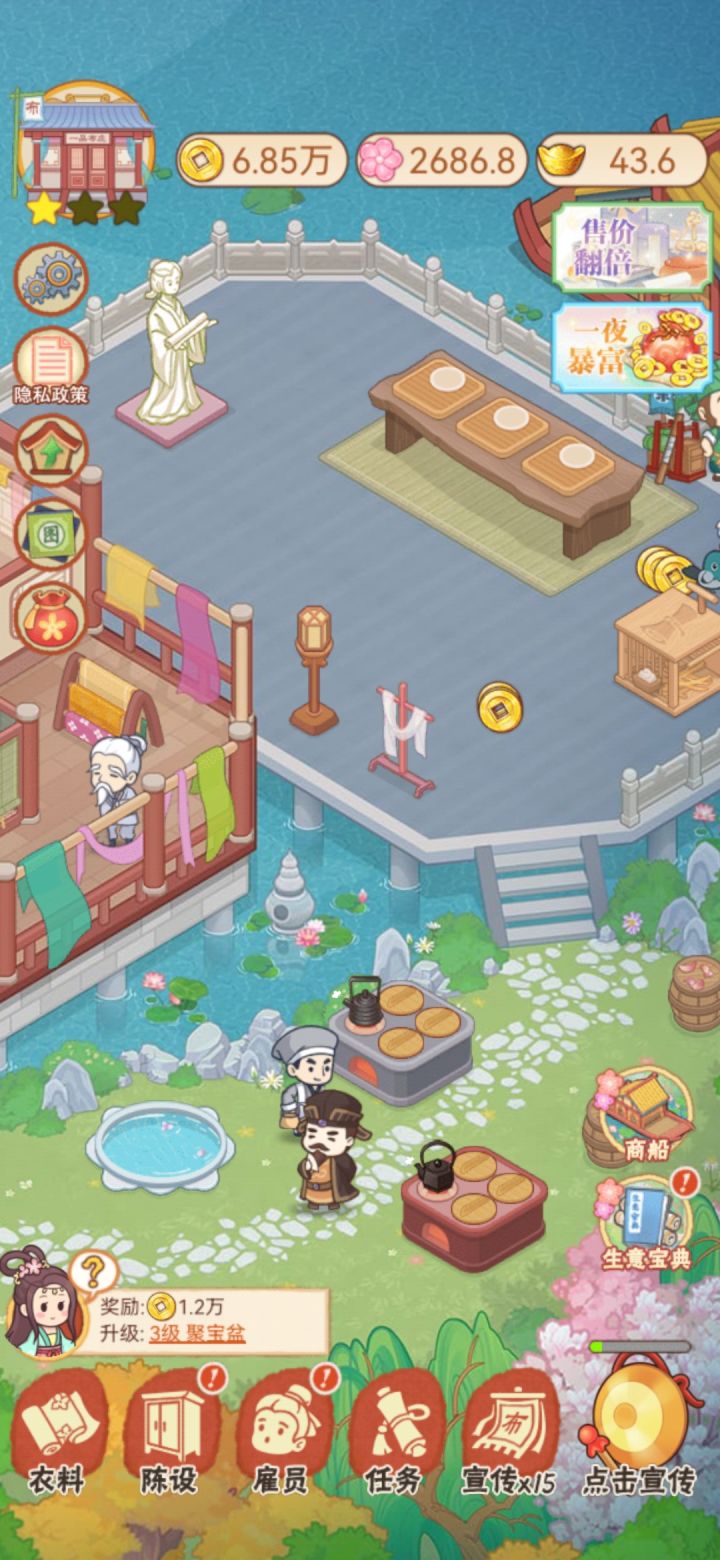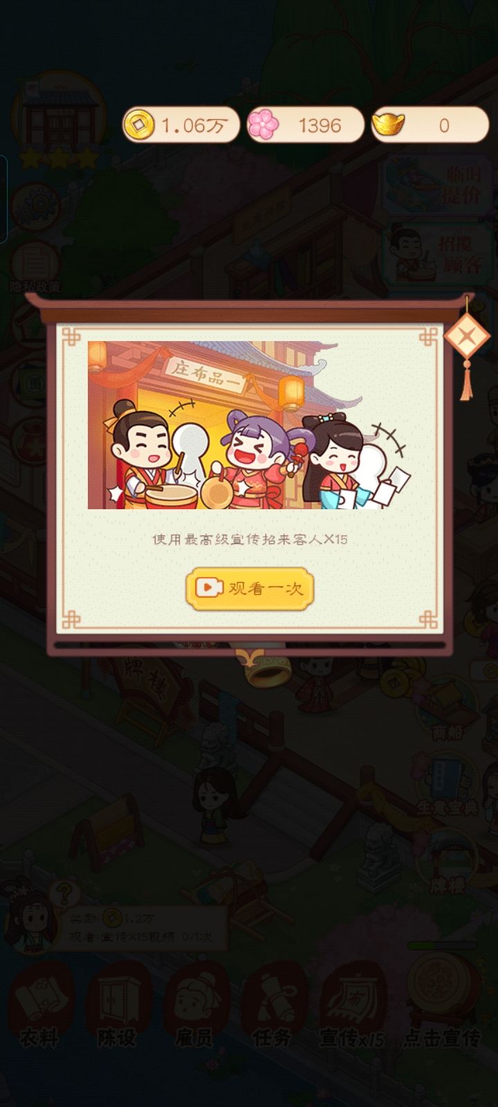 看广告这方面我没啥感触,因为就开局看了一个广告得到12万经营布庄之后,游戏没啥困难度了。任务给的钱钱蛮多的,所以问题不大。
