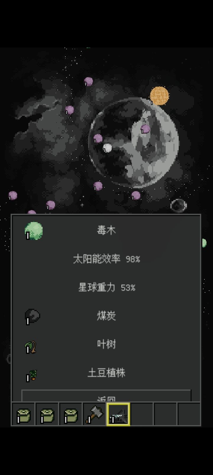 植物: 小麦:暂时没有获取方法 其他植物可通过锤子在其他星球上采集回来种(草可以通过铲子挖,也可以通过图1购买)图2:风车可以产出动能,用图15制作金属制品,如:钉子之类的图3:可以挖矿,不同星球可以采集不同矿(铁矿,铜矿,煤)石头也可以在其他星球上采集,手里拿着矿井或矿坑行走可以探查脚下的是否有矿,可以通过工作台图9制作图5,6:可以换取铜钱和银币,其他一些方法也可获得钱图7:可通过图