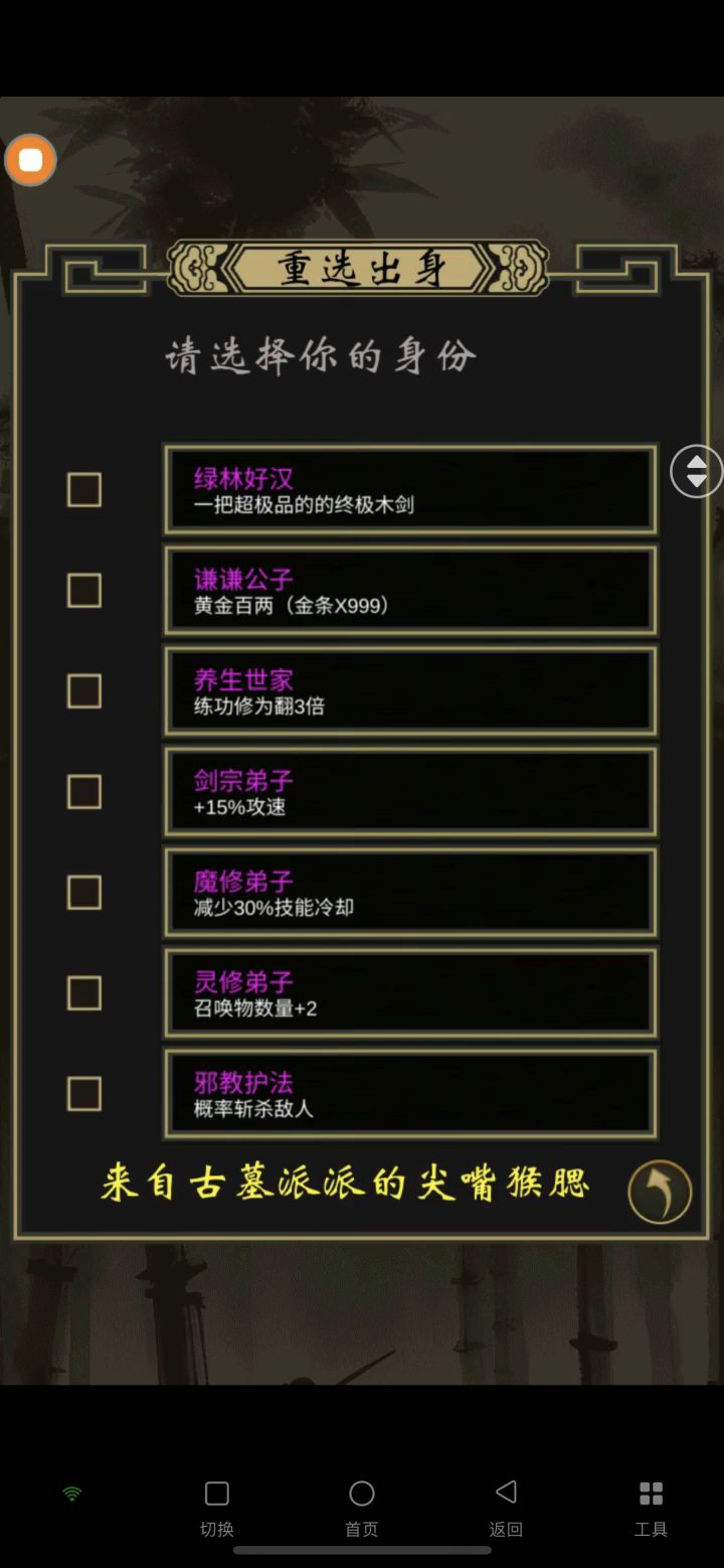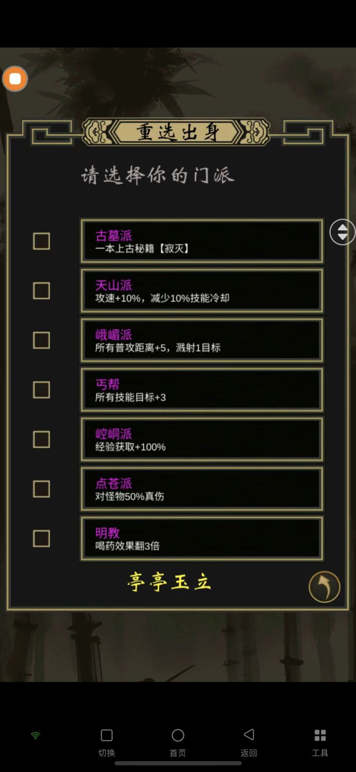 首先我两个区陆陆续续加起来也玩了有一个月了,四区因为进的时候已经完了,错过了大佬们的红包雨,然后又不会玩,论坛和各大网站都搜不到攻略,走了不少弯路,这个游戏虽小,但是确实有很吸引人的地方,所以就选择了玩新区,不走弯路以后果然顺畅许多,下面是我的的一些看法和对新手玩家的建议1.首先很重要的一点,古墓+公子,可以获得100金条,一本顶级武功秘籍万剑归宗,选完之后可以再免费更换一次:推荐峨嵋丑陋剑修,