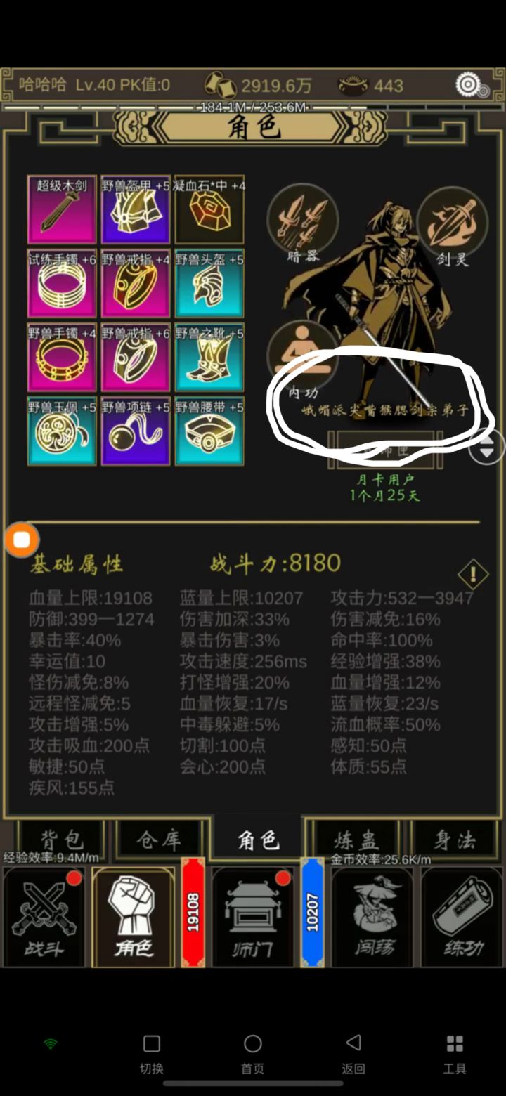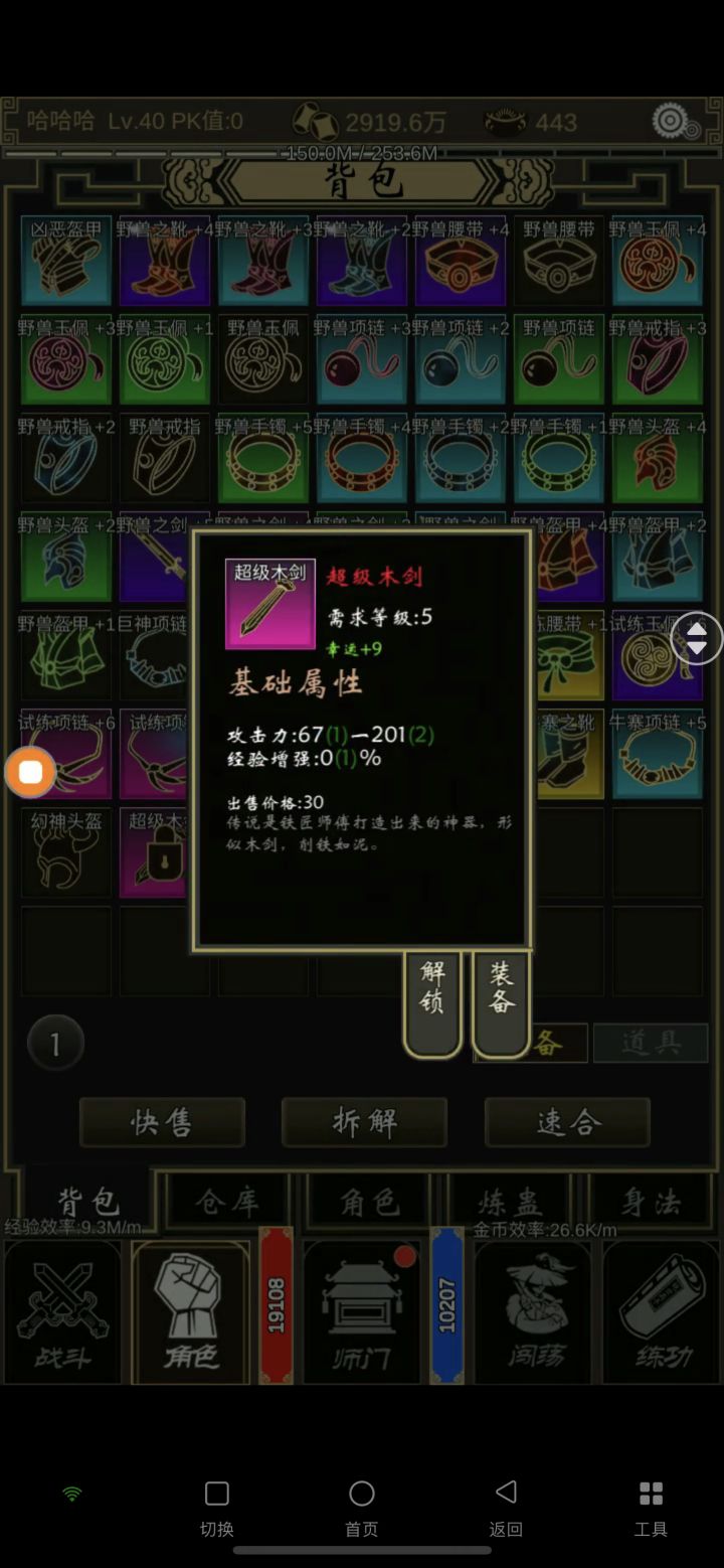 1开局出身选择:第一个随意,第二个选古墓(万剑归宗一本),第三个选黄金2进游戏之后重新出身:尖嘴猴腮+峨眉+剑宗(点角色内功下面的小字第一次免费)3兑换码mj22弄把超级木剑可以用到60级左右,先用一瓶祝福油+1(祝福油只能+1用多也没用),然后有超级神油就用,+9之后攻击伤害触发的都是上限了