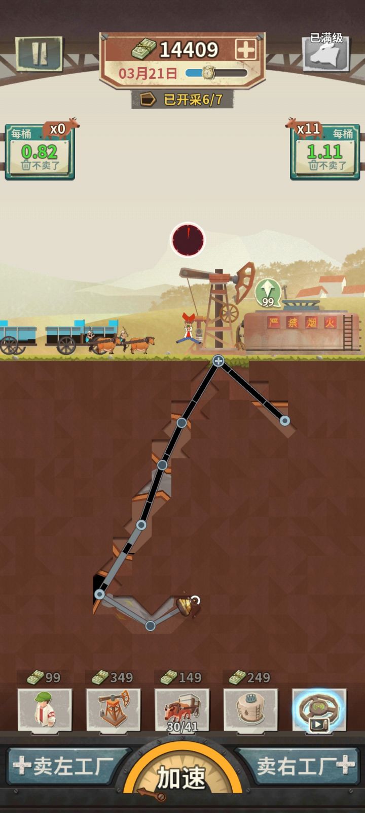今天刚测试的游戏,有些内容还没摸透,游戏主要是以吸取石油,获得收益,提高装备,一款比较励志的游戏。