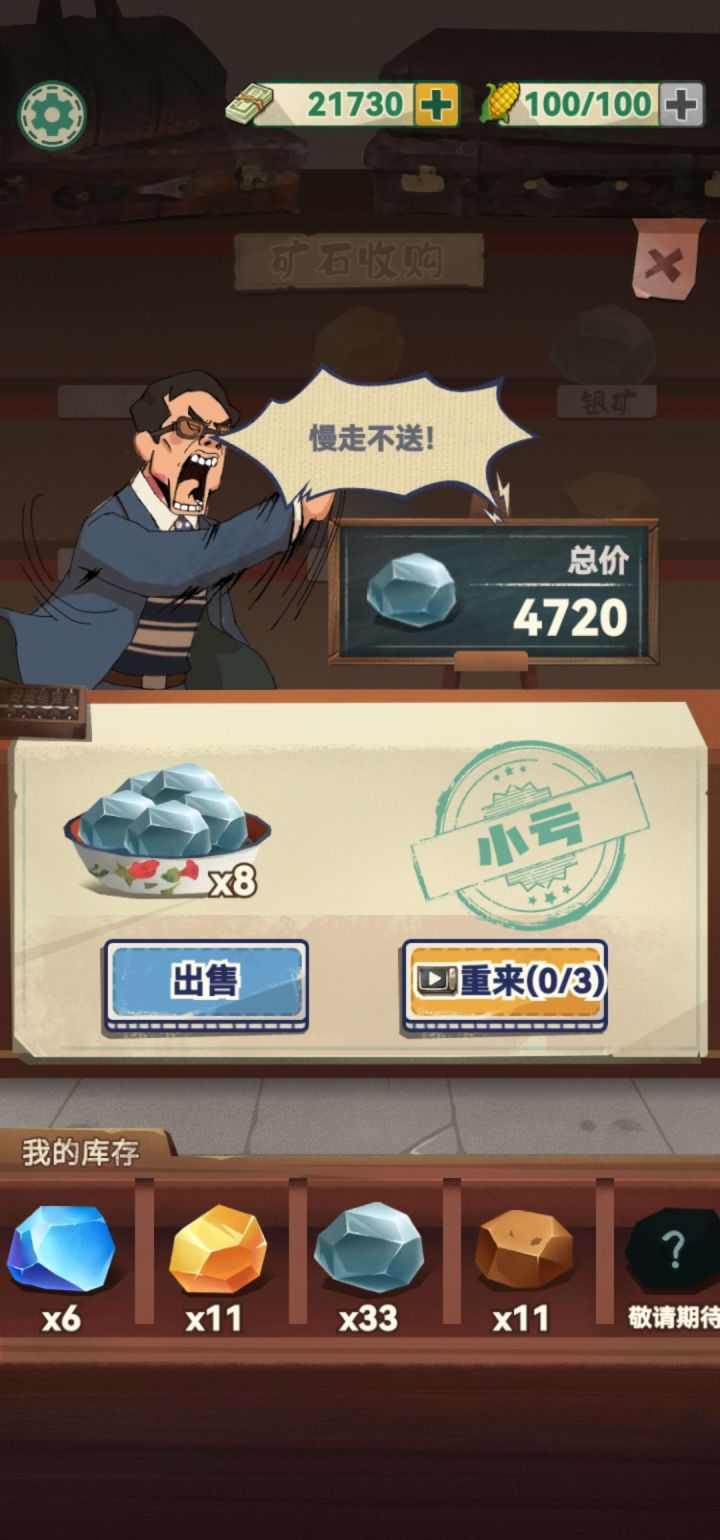 真他妈特么是个老六我八个矿石就卖个五千不到??一个就是1500八个就开采就是一万二本都没赚回来这还挖个屁的矿