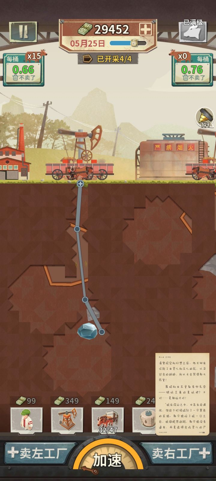 今天刚测试的游戏,有些内容还没摸透,游戏主要是以吸取石油,获得收益,提高装备,一款比较励志的游戏。