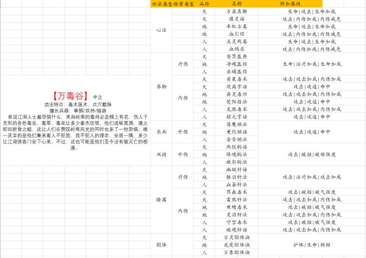 万毒谷武学