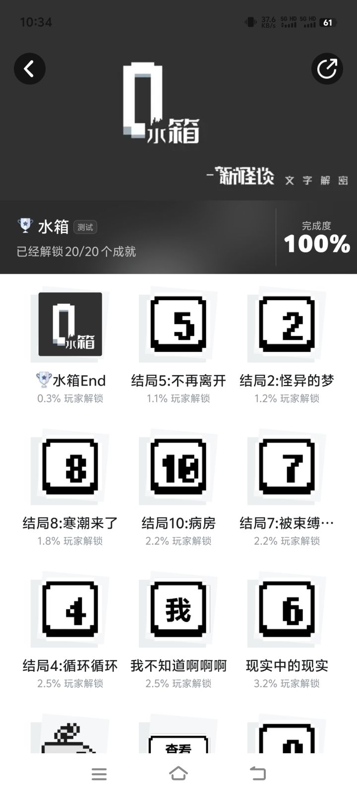 几个结局之间的细微差异使得对处于水箱中的我的刻画更为耐人寻味。当我再一次给实验设备插电,我陷入到无穷无尽的循环中,无法分清这里是现实还是实验,类似于盗梦空间中梦的嵌套——不同的是这次连作为锚点的陀螺也没有; 当我选择溺死其中,便如同温和的走入那个良夜,接受了环境对我的桎梏,但又表现出最终承认无法逃脱某种悖谬的释然——我接受了水箱给我的一切,我属于水箱; 当我在放弃与不甘中挣扎,在两个极端中游走,我已趋近于疯狂——那么,你是否选择面对真相?颇为戏谑的是,或许并没有这样一个所谓的真相——因为即便没有在最后时刻选择观望,而是毫不犹豫的摧毁它,得到的依旧是那个答案——你属于水箱,你无法脱离环境超越你的认知。