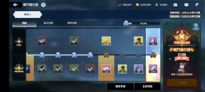 玩了六天,因为第一天晚上才弄好游戏账号,所以实际上玩了五天,一天5h左右。到明天基本就能做到四个满级,但是实际上战力还是差不少,感觉最多也就15w, 后面的关卡已经是17w5了还是打不过了需要多刷装备。前面卡rank卡的很难受,好感度来之不易。买了通行证,当然是因为ip。回合制游戏现在市场上太多了,黑五虽然精良但是同品质的竞争者也很多,相比下来黑五皮肤不够精良,加上本来就是漫改还是热血漫,估计