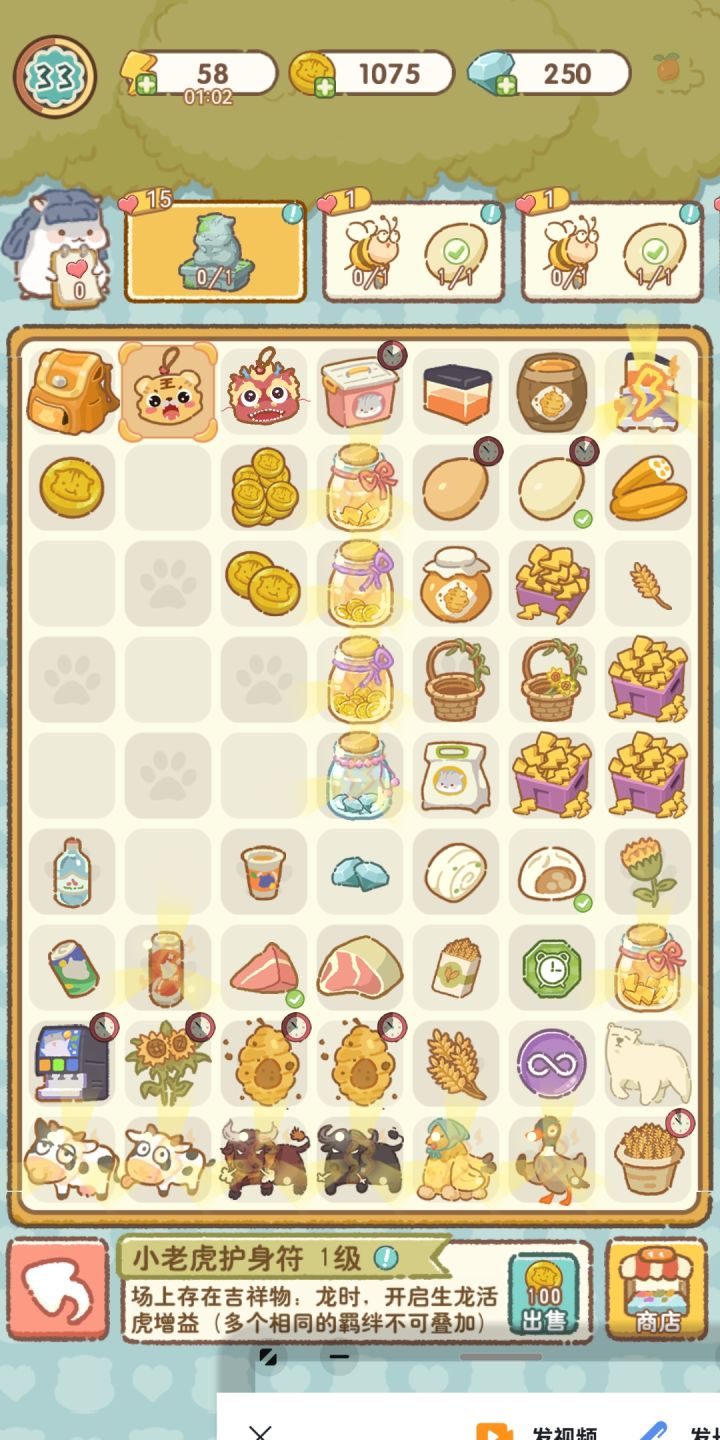 玩了四天,分享一下我摸索出来的一些机制。1:不轻易使用的道具:剪刀I(非必要不往上合成,用于快速提升生产单位等级,机制后面提)+5/+10/+20,用来给特等券,高级仓鼠雕像续命那个无限体力,目前没什么用,请任意使用(这个游戏好像不是很缺体力)2:关键道具最大使用次数金币I/II/III:5、7、9钻石和体力I/II/III:3、4、5红色和绿色货箱I/II:10、15所提道具打