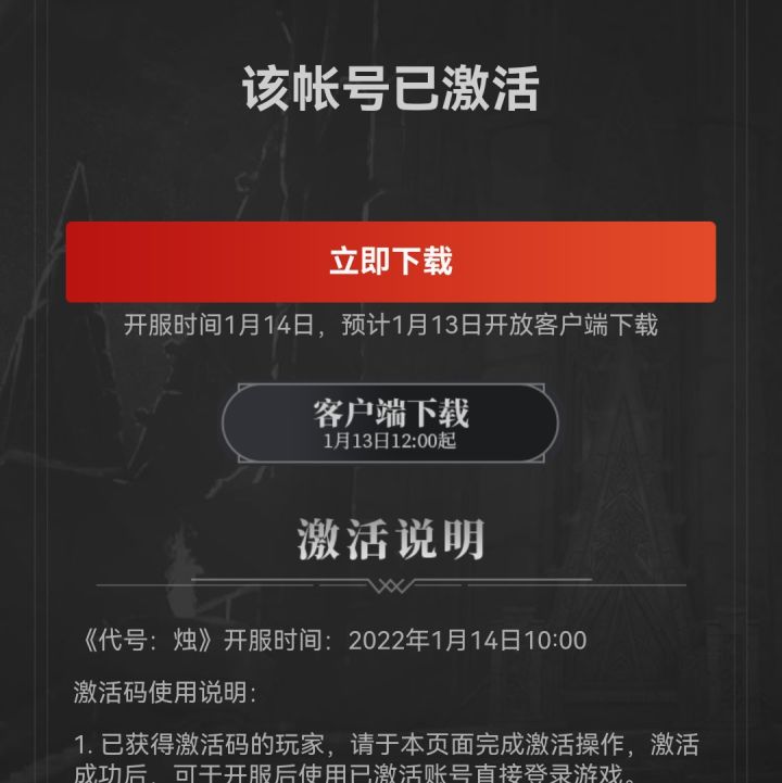 【激活码】《代号:烛》首批测试资格已发放请留意查收!(2022年1月7日)