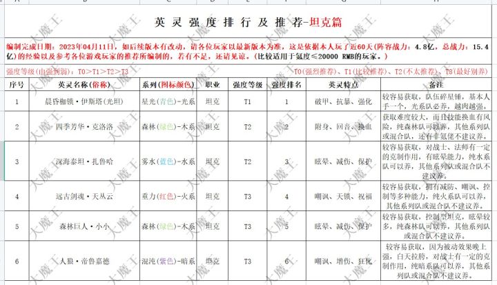 英灵强度排行—法师篇 各位萌新玩家可参考!这两天状态不好,其实编写的这期法师篇,个人感觉还是不够满意,但是时间紧迫,足够萌新玩家参考了,也欢迎新老玩家在评论区留言讨论!因本人工作影响,战士篇可能要延后一周出了,这边提前给大家一些前期、前期、前期战士推荐:风狼(开区前一周可主C)、黑龙(杀穿新手村,从开区能玩到觉醒)