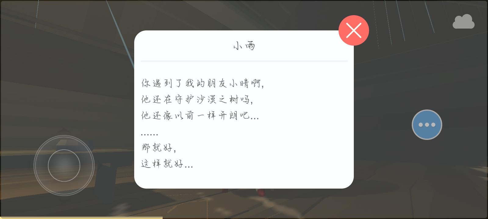 想了想,改一下说法,先前说的太委婉了,就是一个抄袭游戏,没啥好说的,喜欢这类风格游戏的友友可以去看看小陈的《flower》,《风之旅人》还有《光遇》玩了五六关,拼接游戏,背景图和同工作室另外游戏《缘结精灵》《风》很多相似的,很巧,这两个游戏我也玩过,游戏也很简单,找到水晶,完成水晶发布的任务,完成后到下一关,建模的话,我就放图好了,大家可以感受一下,仁者见仁,喜欢这类游戏的可以试一下,只是玩法不太一样