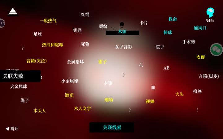 前两天还玩了幽境,也是一模一样的情况,所有线索能找的都找齐了,百分之七八十多吧,然后开始按照攻略关联,结果一个都关联不上,我还在不同平台都搜了攻略,确定了人家攻略没写错…