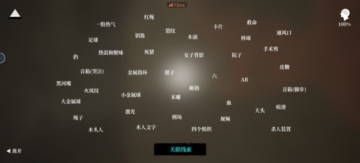 大厅:初始位置一号房间: 足球左边的门,里面有木雕二号房间:一 号房间对面的门,有两层门, 很阴暗三号房间:悬挂尸体的房间四号房间:有“黎叔”两个字的房间钥匙①关联出线索[扔]后,点击墙角的棒球,扔向木质的通风口三次,可砸下一号房间的钥匙。②打开大厅密码箱(见下文密码箱①)获得第=把钥匙,用来开二号房间第一个门。③在一号房间打开激光开关 ,站在木雕前圆圈处,面向木雕,点击大金属球,