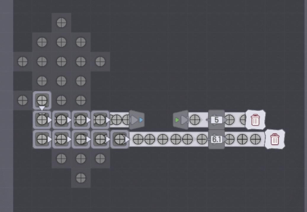 26关之后开启自由模式,大部分人都会选择做一个自动生产图形的机器(成就【万能制造器】目前完成比例为2.2%),我们也称之为MAM(Make Anything Machine)。当然,这个并不难,无非就是拆分图形,用过滤器选出正确的图形,然后染色、堆叠,得到一层,最后堆叠得到多层。但是,如何让它更小、更快?zman(一位国外玩家,可以在discord上面看到他)已经做出了两个版本的30sMAM,这表示能在30s就通过一个速率要求200/s的关卡(相当于811关及以上,也是最高速率要求)。这已经是最快的MAM了,20s的MAM是造不出来的。很多人就算制作出MAM,可能两分钟的速率都达不到,更不用提30s了。除此之外,你的工厂是全自动的吗?如果你需要手动点击开关开屯料放料,那就太过时了。你可以选择利用时间+t触发器,达到定时开关的目的;也可以选择利用标定带+存储器,达到指定数目开关的目的。我们称之为“速率诱骗器”。群里的存档基本都有这个结构。