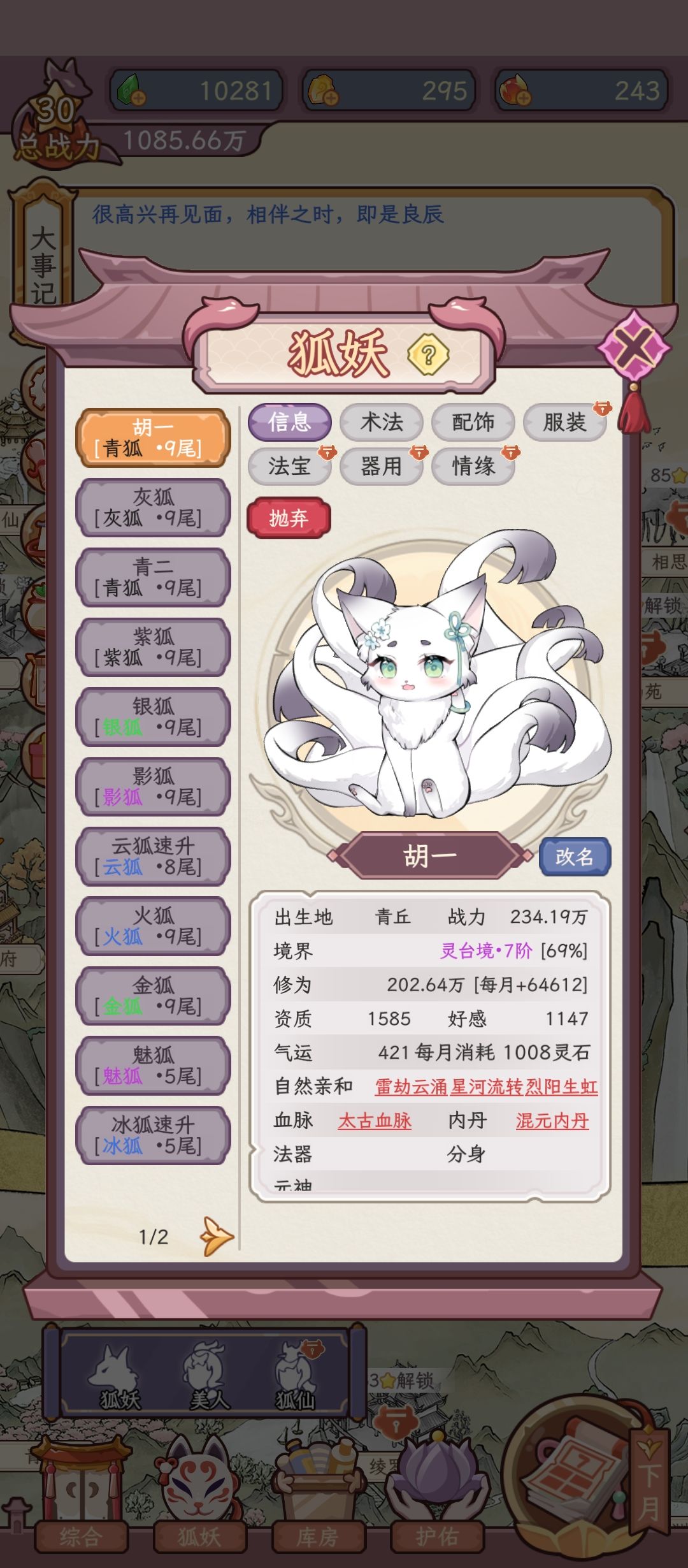 首先 这款游戏的前作我早早入坑 而后做Tap端上线比较晚 我还愣愣的没发现 导致我还以为游戏厂家倒闭了 首先对于这款游戏都是我的主观因素 也有可能是被狐妖1到狐妖2的提升给蒙蔽了双眼 怎么说呢 一切皆有可能 但你要是缺老婆 这款游戏绝对是你的不二之选 关注世羽 游戏永不荒