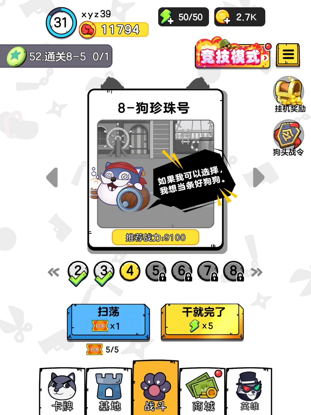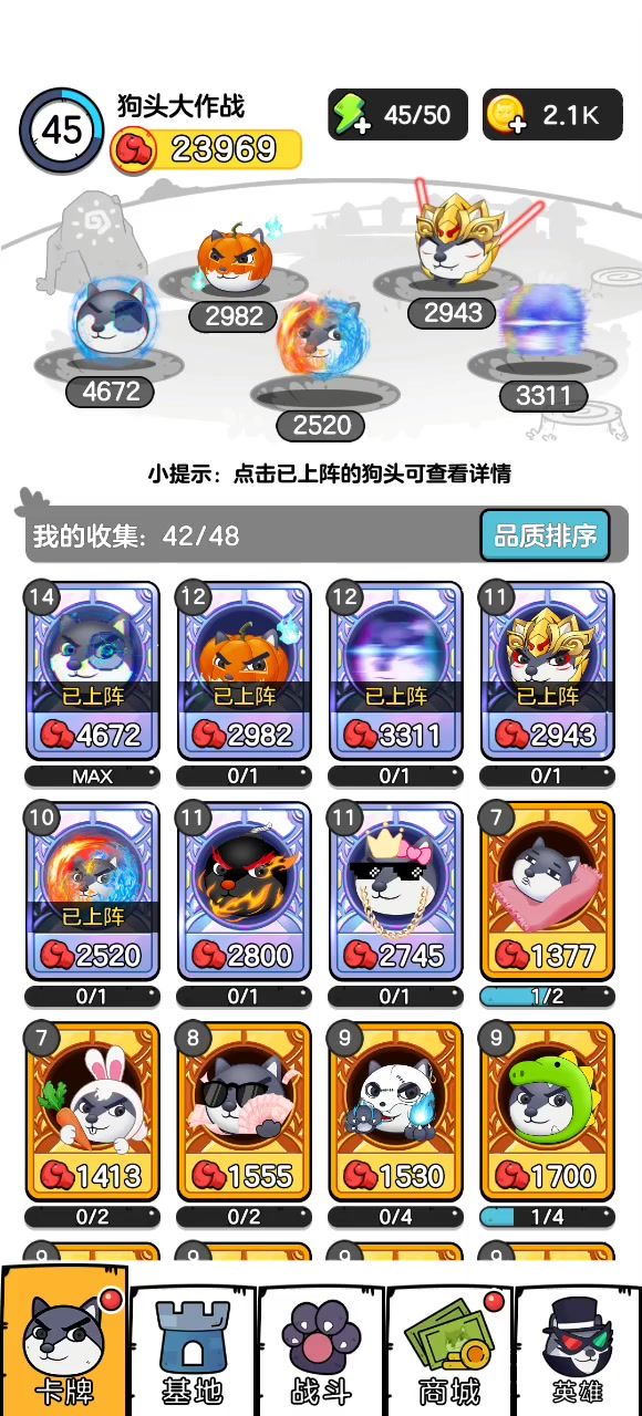 第一次录狗头大作战,给你们看一下我的号!因为我听说这款游戏被称为狗头卡包,所以我就很好奇,所以才玩的。这个号玩了超过七天了。