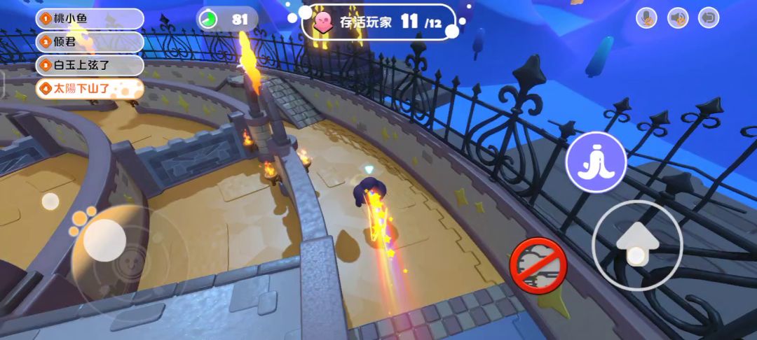 东倒西歪弹射陷阱重重陷阱称号:飞毛腿:时间在90秒之内闪电侠:排名第一真英雄:游戏过程中无死亡通关(淘汰模式第一关三种关卡称号相同)生日蛋糕称号:party大明星:得分最多顶层玩家:个人顶层的全部蜡烛逆水行舟称号:先拔头筹:最先到达对方基地(两队一共取一个)特种兵:单次得分用时最少染色圈地称号:谁能挡我:连续击败5个人,不死闷声发大财:累计圈地最多地产大亨: