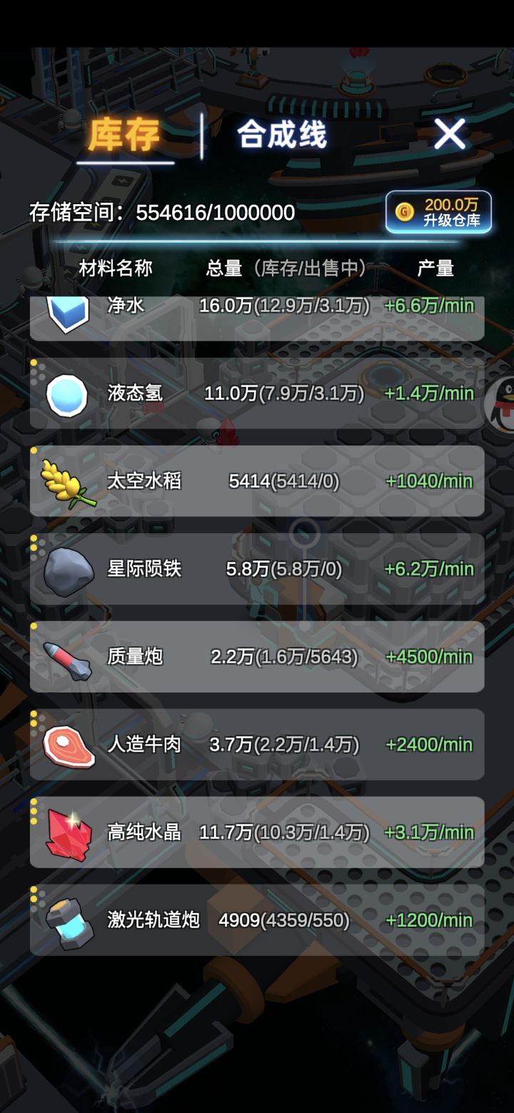 5.主线任务过于死板,上一个没能完成,下一个就无法做,开启下一个区划或者飞到下一个星系,不是通过满足某些条件(举个例子,钱>多少,或者某种产品多于多少,或者某种产品收入多于多少,或者舱室等级、装饰物等级大于多少之类,都是常见城市经营类游戏的解锁要求),像我这样的不是很喜欢(实际上研发室时间也不够富裕)升级主角科技的,就总是被卡住。-0.5星