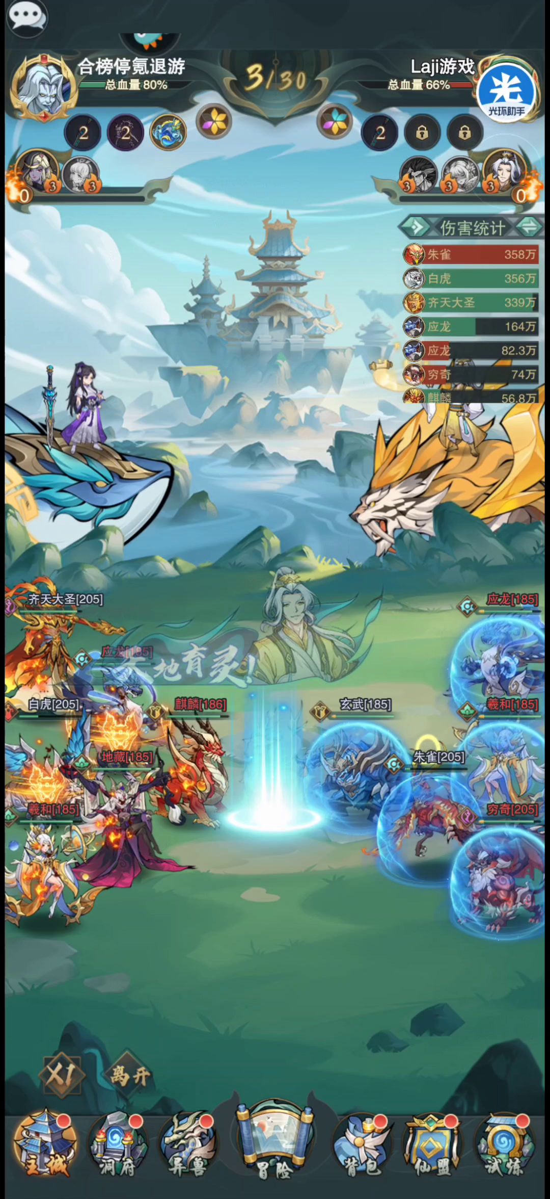 如视频展示的第三回合,在应龙行动后,敌方朱雀已经死亡,而我方齐天大圣却异常地继续攻击异兽尸体,并且触发了百战不殆技能,对敌方全体单位造成了间接伤害。 目前齐天大圣,穷奇,白虎,朱雀,均出现过如视频所示的攻击尸体的异常情况。