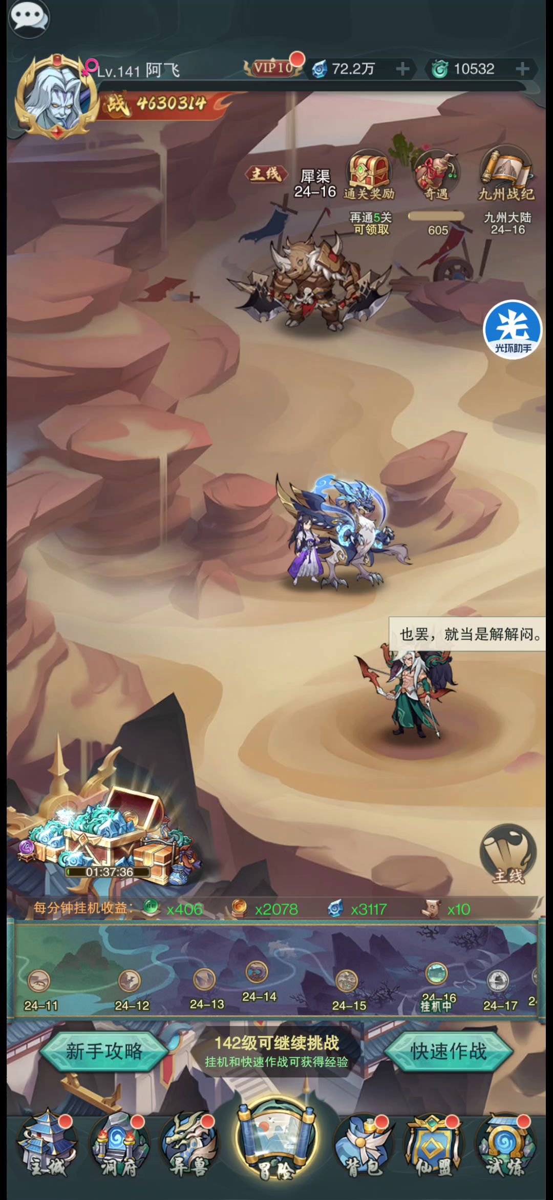 登录游戏后,不显示人物经验条,只有在收取累计奖励后,才会显示经验条进度