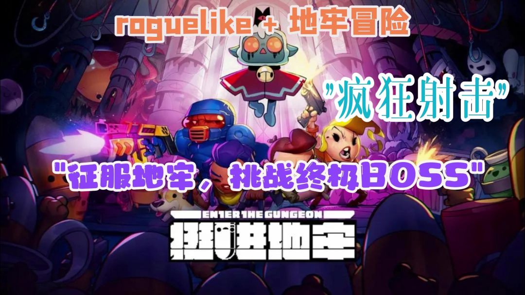 #浅评一下 《挺进地牢》作为一款Roguelike游戏,其主要进攻手段,是二百余种截然不同的枪械。用子弹对敌人进行攻击,这样的攻击手段,单凭想象似乎有些单一,甚至于肉鸽类型提倡多元化的攻击手段有些格格不入。像是《Hades》这样的游戏,每种武器尚且有攻击、特技、冲刺、血石,大招等各种攻击手段配合不同祝福演变的不同攻击形式。《挺进地牢》则不同,每个人物除了主动道具外,最主要的攻击手段只有枪械。《挺