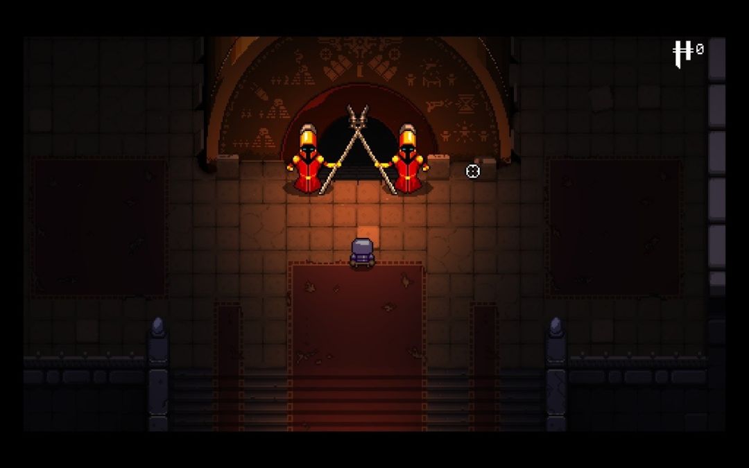 兄弟,玩了十几年游戏了,怎么开始游戏还用你教?你别说,你还真别说,万一就有跟我一样的卧龙凤雏… 当我第一次进入《挺进地牢》完成教程的时候,我怎么也没想到,我将把接下来的五分钟浪费在“寻找游戏怎么开始”上。 地牢大厅共三个门,左边是新手教程,右边被木板钉上了。 而正中间的华丽大门被两名守卫严加守护。 那我走去哪里开始游戏? 我点了一下ESC,只有设置之类的;我甚至以为是新手教程漏看东西了,还去重打