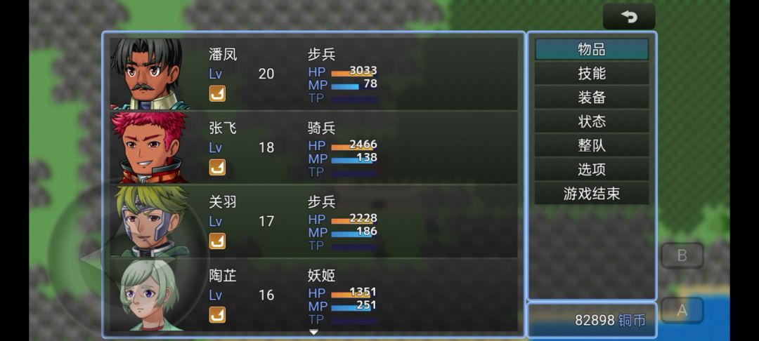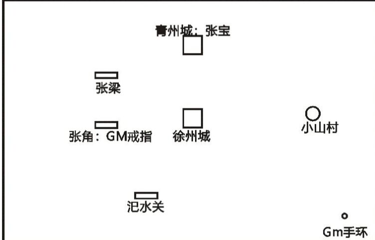 注:RPG游戏多存档,存档位很多,有些东西过了就没了,每到一个大城记得买2个传送水晶。 开局和刘母对完话后点刘母后面柜子拿到雌雄双股剑 ,刘备一人直接出村子去大地图右下方拿到GM手环—再回村子对话关羽张飞宋人宋勇—去徐州城和陶谦对完话(顺便可以把徐州城的宝箱打开888银两和糜竺对话送1000银两)去打张角。 先打右下角张角,不能打别的地方, 打完张角下面的石头里有GM戒指(要加群下载1.05版本才
