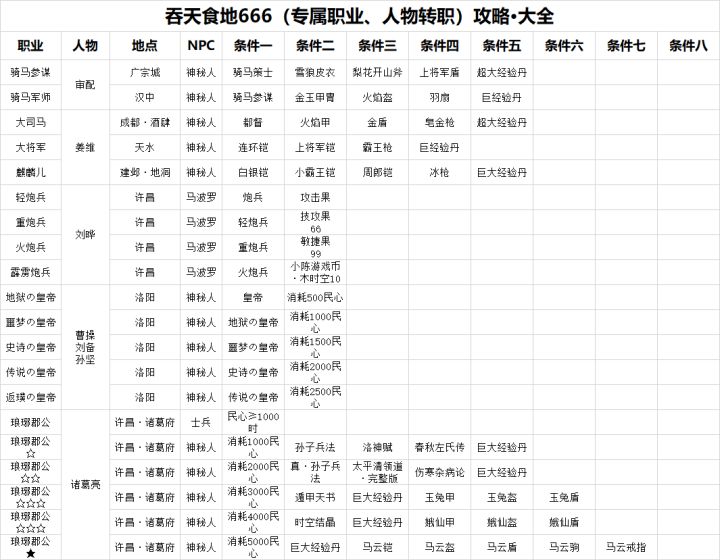 【吞天食地666(特殊人物、职业、转职攻略)】