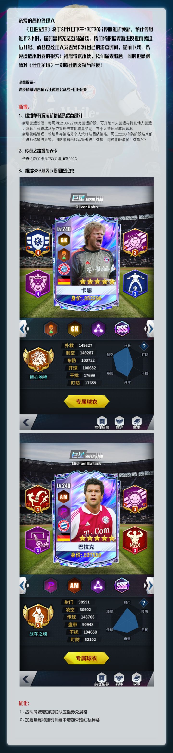 《任性足球》0801更新公告