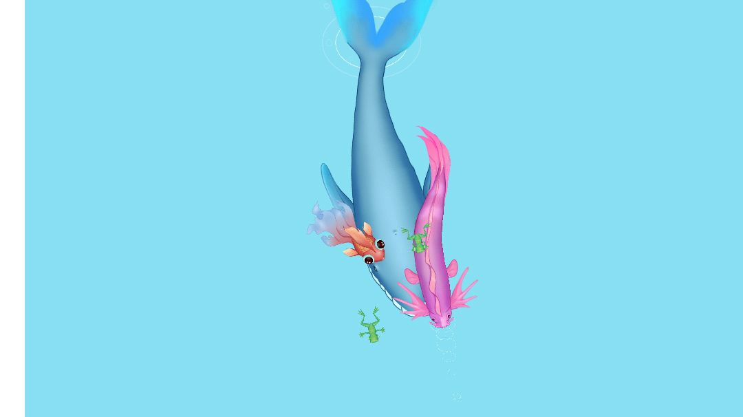 想要不卡的度过鲸鱼,就得绕着所有鱼走,除了紫色贱婢和鲨鱼,其它鱼都不能吃,不小心吃到两三只小的问题不大。
