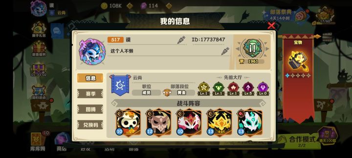开局建议同一区建两个号,其中一个号不玩也没关系,当任务辅助小号用。(有两个手机或着开个手机模拟器做任务,好友合作任务速死,友谊合作任务速死,后面打合作排行榜也不用加好友,直接找小号打就行了) 开局进游戏速刷1000杯+合作100层两个橙(运气好的话拿到输出前期就容易多了),刷1000杯前可以先看活跃任务广告送蓝色紫色角色,然后新手任务送紫卡1000分白蓝紫新手队以火焰巫师+傀儡为核心的队伍