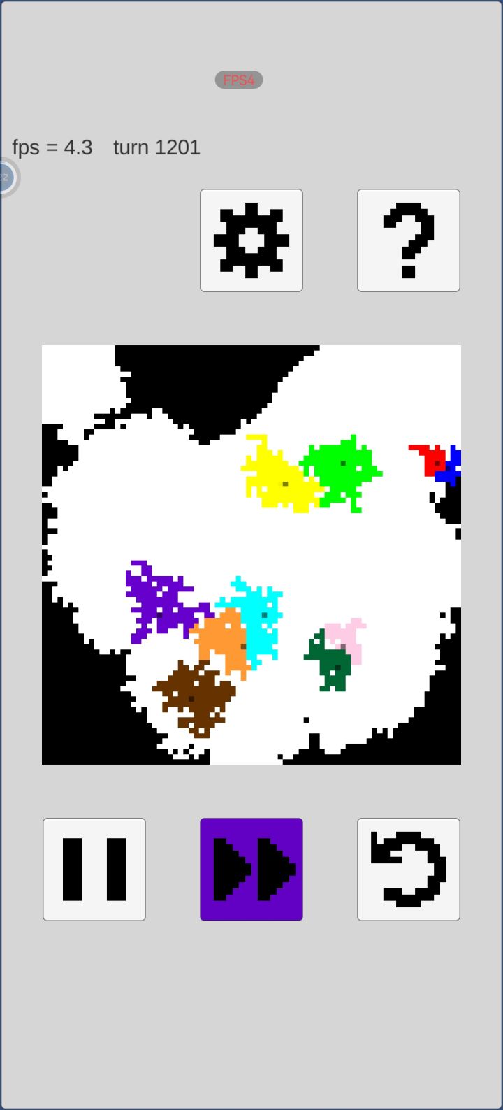 基本常识:一、玩家是绿色二、点击绿色之外的颜色,表示玩家(绿色)不进攻该颜色三、默认状态,进攻所有颜色操作:一、千万不要点击空白,点击空白,玩家(绿色)不进攻空白地方二、开局不要花精力进攻其他颜色,先占空白