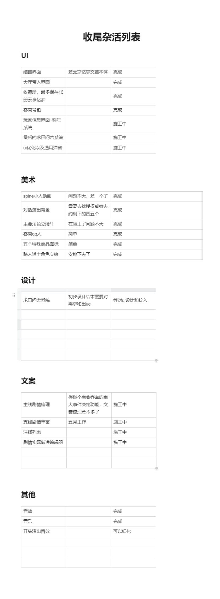 这段时间程序继续平推、测试、接ui。我剧情大致写完了,还需要细化。清完这个表之后差不多demo就结束了。下次让小人动起来其他很基本,先不展示了。每天在杂活里打滚,继续干去。